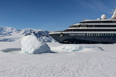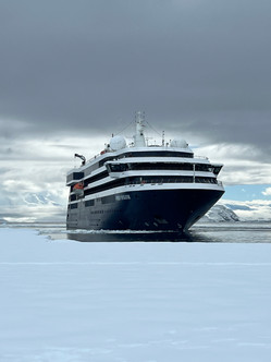 The next morning was a special treat. The captain was able to push the ship into the sea ice at Charlotte Bay without cracking the ice. That enabled us to exit the door where we normally board the Zodiacs and walk right out onto the ice. You could tell that the captain was quite proud of his accomplishment, and the expedition team and crew were quite excited. We walked out onto the ice and wandered around checking out the landscape, penguins, and seals. Later, on the way out of the Bay, I wandered up to the bridge and was able to watch the ship officers maneuver their way through the ice. Quite impressive.