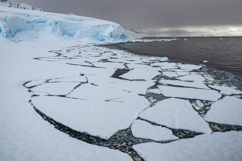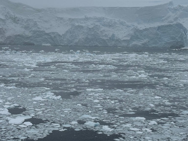 The next morning the captain tried to do another landing on the sea ice at Wilhelmina Bay, but the ice kept breaking up, so we ended up taking the Zodiacs to land on the ice shelf. We took a walk around the ice to enjoy the scenery, and came upon some large crabeater seals.