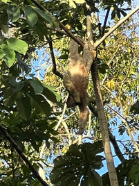 Heading from La Selva to Puerto Viejo de Talamanca, I spent the night at a campground called Caribbean Rainforest Sloth. It was a pleasant surprise. It is owned and managed by a very nice man named Jose. He has created a little piece of heaven populated by a plethora of fauna and flora. He used to work driving tourists from cruise ships that docked in Limon, but when the pandemic hit, he was out of work. Then he started working on his little organic farm and haven for sloths, frogs, birds, and campers. He is very proud of what he has created. When I first arrived, he took me around and showed me all the different plants and fruits he is growing (see the baby pineapple). He has a log that he puts fruit on for all the birds, and what a diversity of birds that come. Such beautiful colors. He has sloths that hang out in his trees. Such fun to watch them. At night we went hunting for frogs and other creatures. He is such a nice and friendly person. It's too bad I had to leave early the next morning.