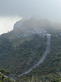 The next morning we woke up to near-freezing temperatures and a fresh dusting of new snow in the mountains above us. I was so excited. Leaving Sheri in our warm bed, I got up and went for a short hike as the clouds cleared and the Ruiz Volcano showed it's snowy and steamy visage. (We were camped at 13,000 ft and Volcan del Ruiz is 17,450 ft tall.) So beautiful. After Sheri got up, we drove down the valley to the hot river for a nice soak. We were among the first few people there, which was nice since, given the holiday, it began to get crowded when we left. Such a nice morning and we were able to get an early start heading to Medellin. Interestingly, on the way to Medellin, the temperature reached 100 degrees F, a difference of about 65 degrees from the morning.