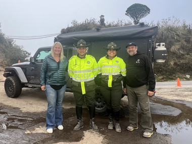 As we drove up into the mountains past much traffic (due to the Semana Santa holiday), the forest gave way to a steep landscape with beautiful waterfalls and a tundra-like grassland/shrubland unique to the northern Andes called páramos. Páramos are dotted with a interesting shrub called frailejones, making a unique and beautiful landscape. We came upon a small restaurant and asked some very nice police officers about camping there. We talked to the owner and it was no problem once the parking lot opened up. We put up the tent and ate a bit of food that we purchased at the restaurant. Hank attracted attention and we entertained questions from some of the Colombian tourists there. We then crawled into our warm bed and crashed.