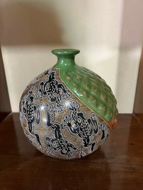 On the way from Leon to Granada, we had the opportunity to stop at the village of San Juan de Oriente and meet Helio Guiteirrez. Helio is one of the most famous potters of Nicaragua. His pots are exquisite. He has won many awards including the UNESCO Cultural Artist award in 1999. He is justly proud of his work. He showed us his many certificates, awards, and features in art books. It was fun to see how proud he is. And he is so friendly and despite his recognitions, very humble. We also met his charming son. We bought three pots from him, including his "fish-man," which I later found out has won awards. A wonderful visit with a great person.