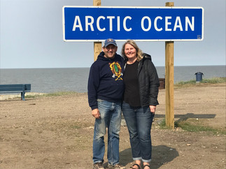On the other end of the Pan-American Highway is the town of Deadhorse, an oil town in the tundra near Prudhoe Bay, Alaska some 12,580 km away (if you take the most direct route). To get there you take the Dalton Highway from Fairbanks. It goes through some beautiful landscapes, especially the Brooks Range and descending down into the tundra. Sheri and I drove there in July, 2019. We also drove to the Arctic Ocean (and took a dip) in Tuktoyaktuk, Northwest Territories, Canada, on the Dempster Highway from Dawson City, Yukon. In some ways, I prefered the Dempster Highway. Spectacular scenery and wildlife, but less developed at the end of the road than the Dalton Highway. And wonderful Athabascan and Inuit culture in Tuk and Inuvik.