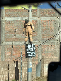 We had an interesting experience the next day on our way to Cusco. Coming into the larger city of Juliaca, we ran into some roadblocks. Turns out there were protests in the city and nearly all the streets were shut down with roadblocks of burning tires, ropes strung across the roads, and rocks and tires in the roads. From looking online we found out that a community activist was assassinated two days before and the city was fed-up with crime as well as police (18 people were killed by police in January 2023, known as the Juliaca massacre), so citizens shut down the city. Trying to drive through the city, we would drive down one street only to find it blocked. We kept trying different routes until finally we took some smaller unpaved city streets until we were on the other side of the city, but not near the main highway. Nevertheless, we took that highway for an hour until we could cut over to the main highway to Cusco.