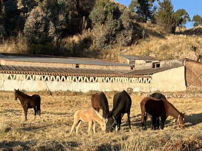It was late in the afternoon when we returned to Puno. We decided to head down the highway a little bit towards Cusco. We stayed at a campground that was an old hacienda, now a horse farm owned by a couple from Switzerland. They weren't there, but the caretaker showed us where to park. It was a beautiful place with no other people around. At sunset and sunrise, the caretaker took the horses in to their stalls, and at sunrise, let them out to pasture. Beautiful creatures.