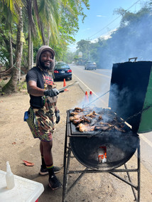 Ryan recommended a great food stall to me with the best jerk chicken - no, the best chicken ever - and some incredibly good hot sauce. It's called Take It Easy. It is run by the friendliest guy named Chris. You can tell he was a good person because he would hire these young kids to help rake leaves and bring the chicken to people. I had to wait a while for the chicken to cook, but that was not a problem relaxing in the hammock. He had benches around with some great sayings on them - perhaps I need to add them to my favorite quotes in the blog.