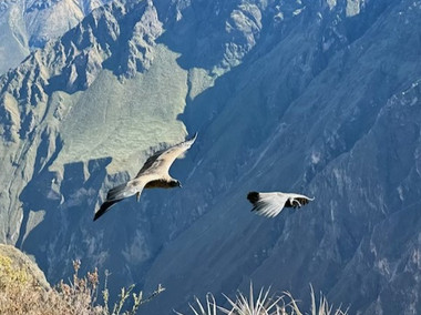 One of the most amazing sights on our travels has been sitting on the edge of Colca Canyon and watching the magnificent Andean condors soaring below us with barely a flap of their wings.