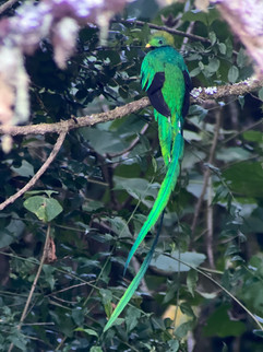 I saw perhaps the world's most beautiful bird the other day. I had a little bit of time before heading back to Santa Ana (near San Jose) to get ready to fly home for Christmas, so I headed to San Gerardo de Dota in hopes of seeing a quetzal. Resplendent is part of its common name, but this bird is anything but common and certainly lives up to its name. Resplendent is defined as attractive and impressive through being richly colorful and sumptuous, shining brilliantly with glowing splendor. It has deep green, iridescent feathers with a red chest and black and white accents. The male has very long beautiful green feathers covering its white tail feathers. When they fly in an undulating pattern, they look like dragons as the feathers trail behind. We saw three males that were chasing each other in a bid to get the attention of two females.