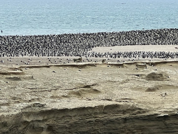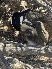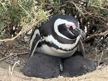 The park is an excellent representative sample of the Patagonia steppe and coast of Argentina. It is home to large colonies of Magellanic penguins and three species of cormorants. The penguins nest under bushes, where we could find the parents sitting on of newly hatched chicks. Along the roads in the park are large herds of guanacos with young ones, and many of the ostrich-like birds, rheas. On the sandstone cliffs on the coast are colonies of sea lions. Also present in the park are pumas, which have returned to the park once sheep herders stopped shooting them to protect their sheep. The park is the only place in the world where pumas feed on penguins.