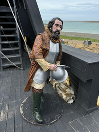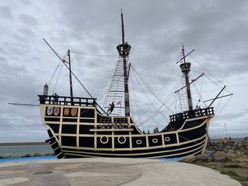 After spending the morning at the National Park, we headed north along the coast to the town and natural harbor of Puerto San Julián. Puerto San Julián is the place where Magellan spent the winter before sailing around the tip of South America in his circumnavigation of the world. It was here that Magellan headed off a mutiny, executing the mutineers and leaving one person behind on the shore to fend for themself. In the town is a reproduction of Magellan's ship. It was interesting to see how small the ship was and imagine what it was like to live aboard for so many years. Magellan's voyage was quite a feat. (An excellent account of the voyage may be found in the book Over the Edge of the World by Laurence Bergreen.)