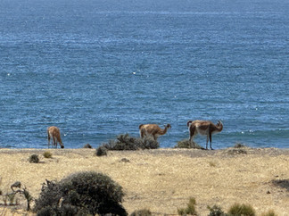 Next morning, we took the long, straight road across the Patagonian steppes to Punta Tombo. Punta Tombo is the largest penguin colony on continental South America. It's a lot of penguins - about a million by one estimate that I read. It was fun watching the penguins come ashore and waddle up to their nests. Again, there were many young chicks in the nests. Also present at the nature reserve were many other birds as well as guanacos.