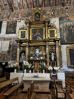 The day before visiting Machu Picchu, we visited several other Incan sites in the Sacred Valley as part of the tour. The first stop was at the town of Chinchero. Chinchero is another town well-known for their textiles. We visited a textile cooperative and saw another demonstration of the dying and weaving of alpaca wool (with a very funny presenter). We also saw some very wary guinea pigs there (haven't yet tried this Peruvian delicacy). The most interesting part of Chinchero is the church built upon the ruins of the palace of Inca Tupac Yupanqui. The church, built between 1572 and 1607, felt old with a musty interior and some very old paintings.