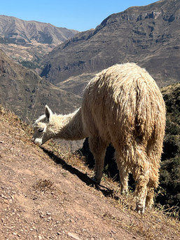 Later in the week we visited the Inca ruins near Pisac at the head of the Sacred Valley. The agricultural terraces in the Sacred Valley are truely amazing, and some of the most amazing are near Pisac. On our way from Pisac, we visited another museum about weaving and met some quite charismatic alpacas and llamas.